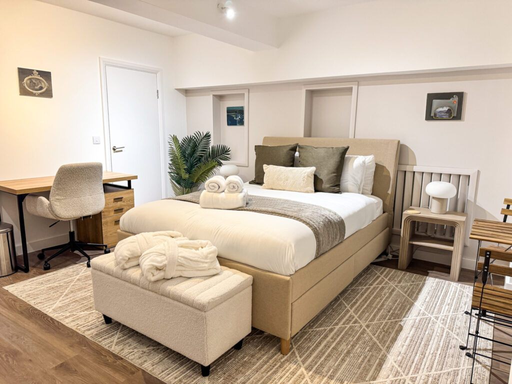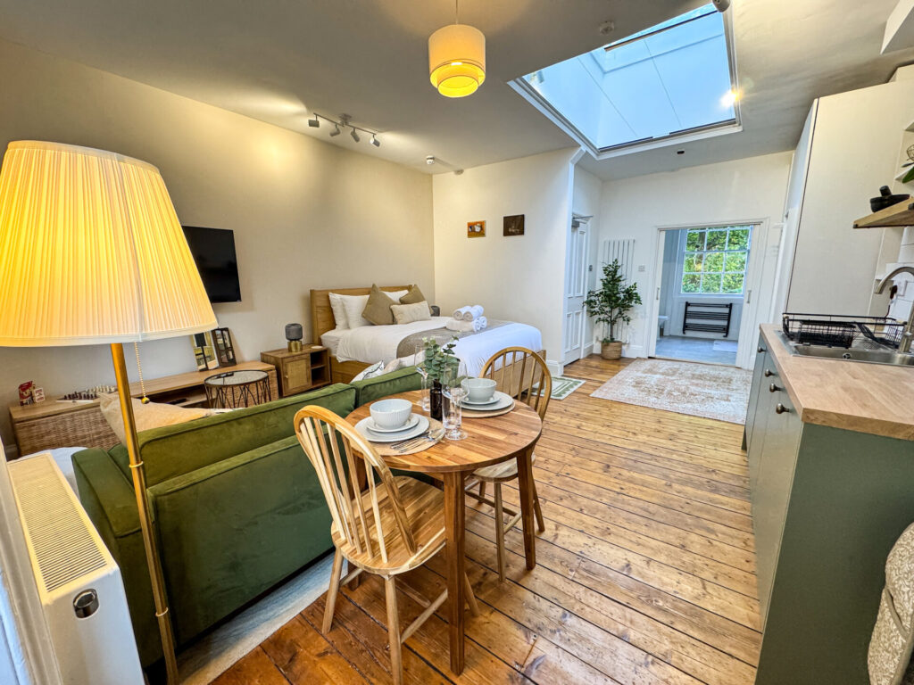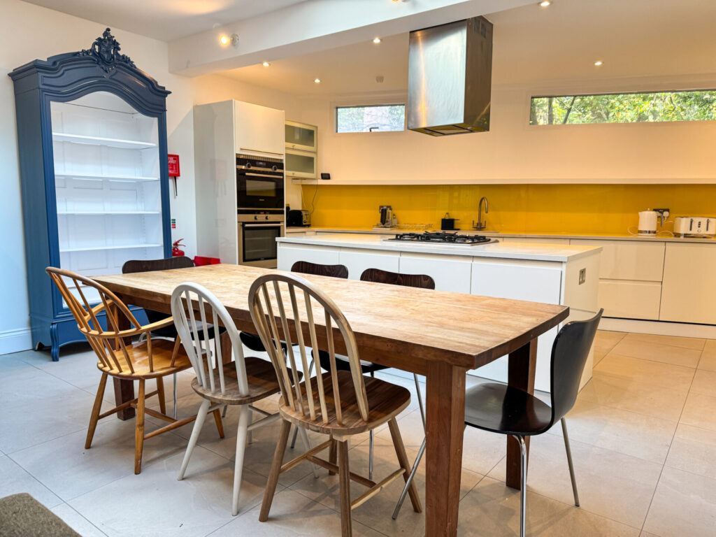 The property was reconfigured into two distinct parts: a self-contained one-bedroom apartment on the lower ground floor, designed for two people, and an HMO across the upper floors, providing six bedrooms, two en-suites (including one with a sauna), additional shared bathrooms, and a large open-plan kitchen, living, and dining space. The building also benefits from access to a roof terrace.