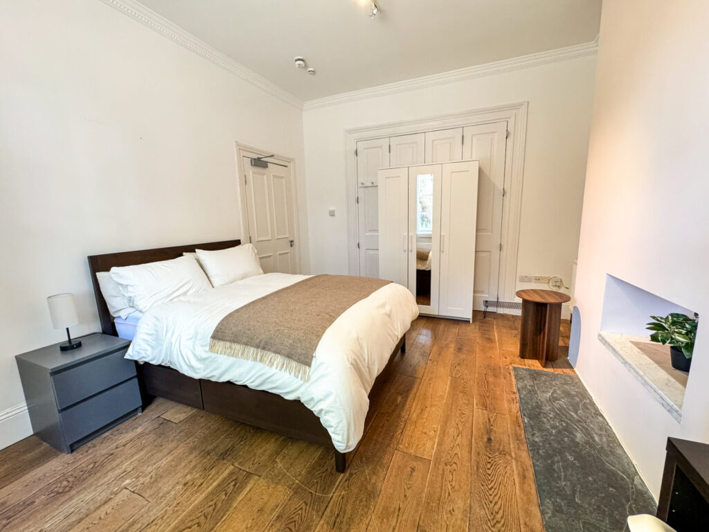 The property was reconfigured into two distinct parts: a self-contained one-bedroom apartment on the lower ground floor, designed for two people, and an HMO across the upper floors, providing six bedrooms, two en-suites (including one with a sauna), additional shared bathrooms, and a large open-plan kitchen, living, and dining space. The building also benefits from access to a roof terrace.